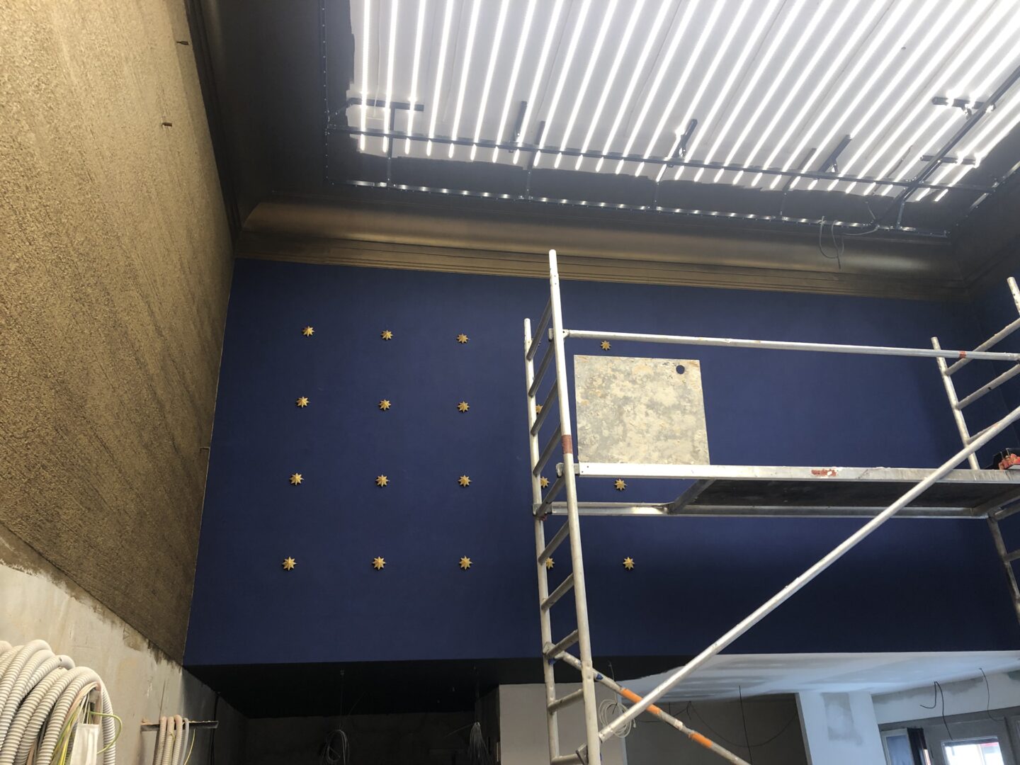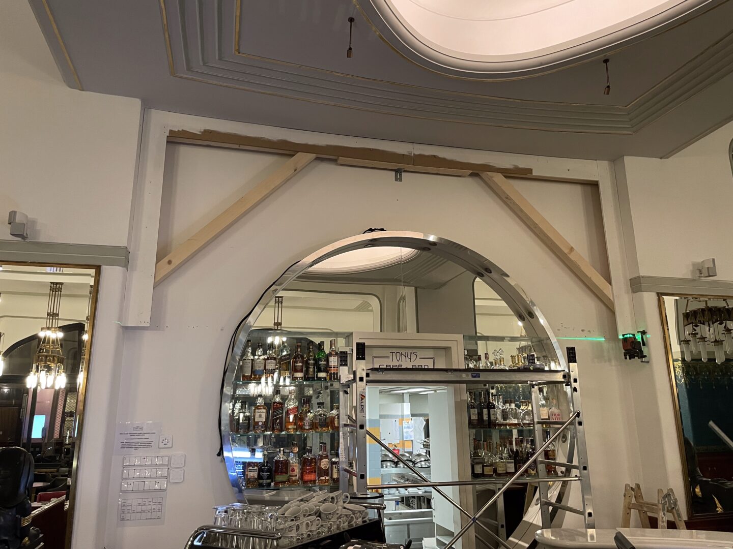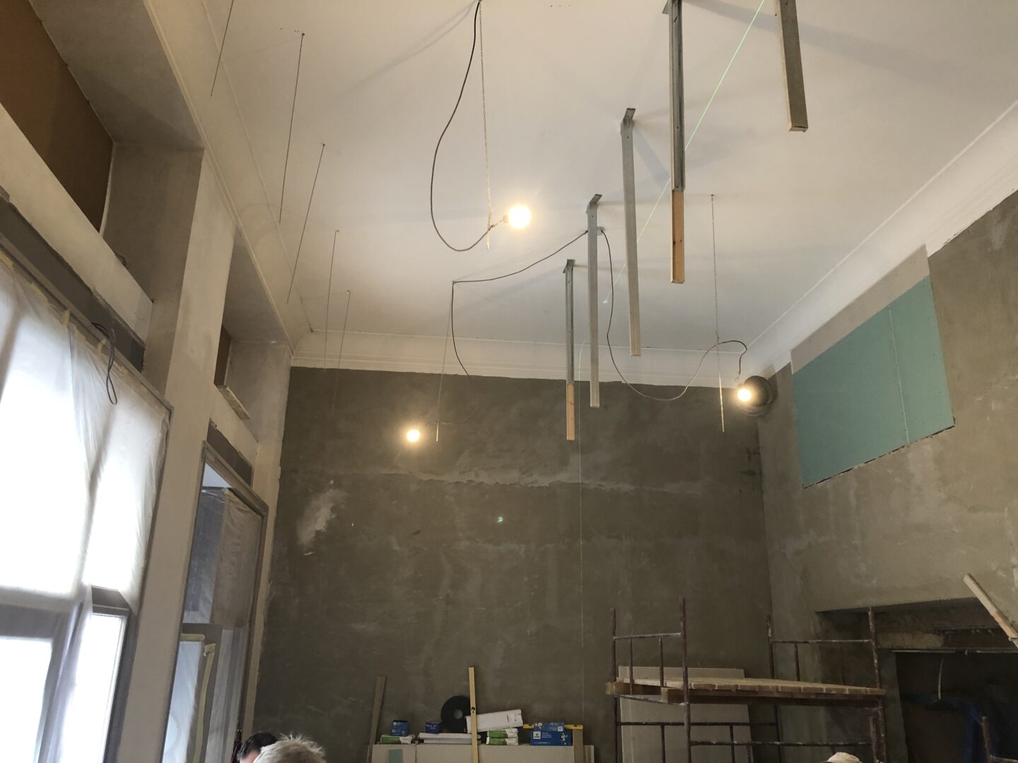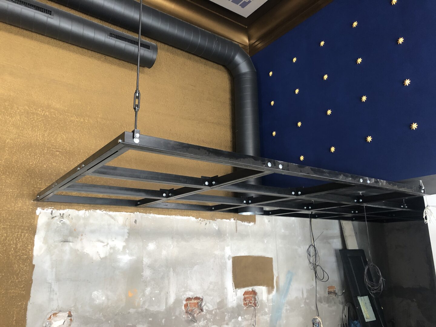 Instalace nosných konstrukcí a sádrokartonového zapláštění včetně stavebních úprav a malířských prací v historickém interiéru hotelu Paříž.