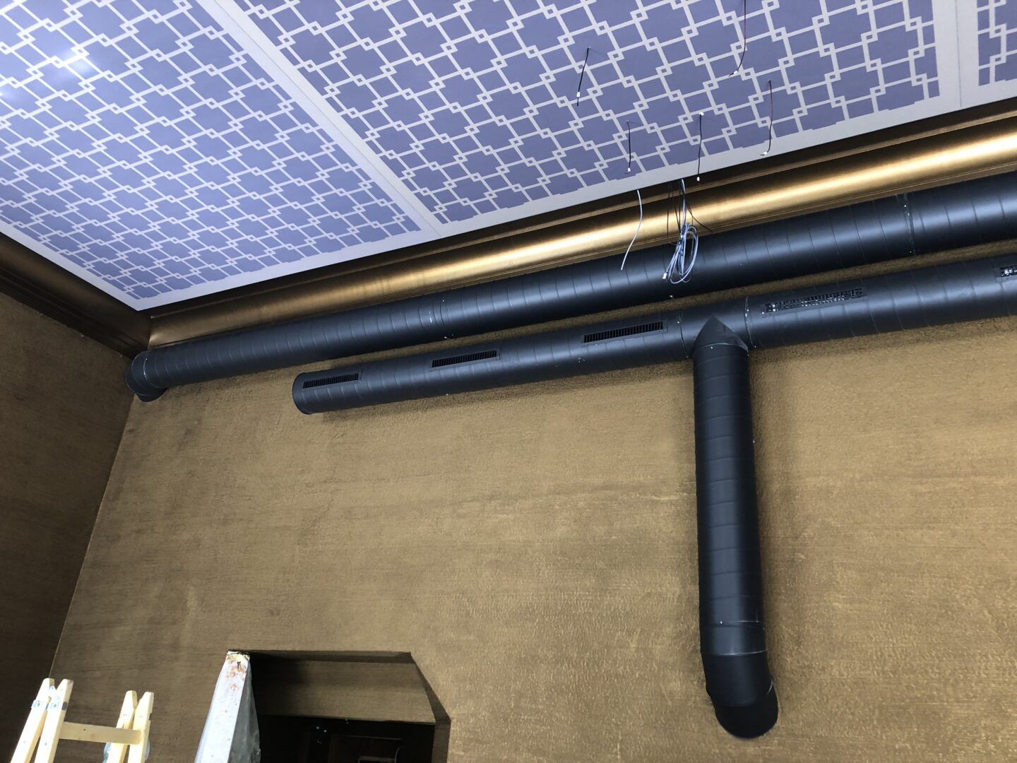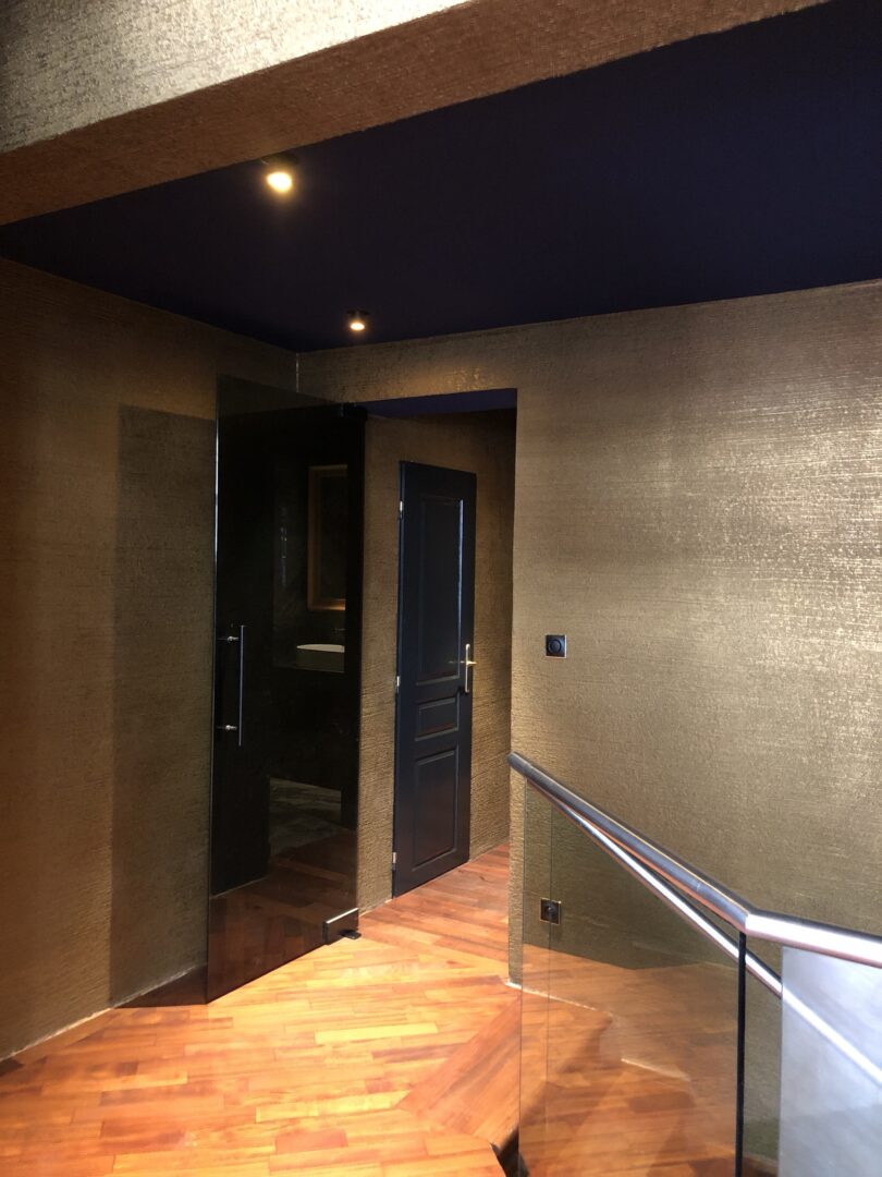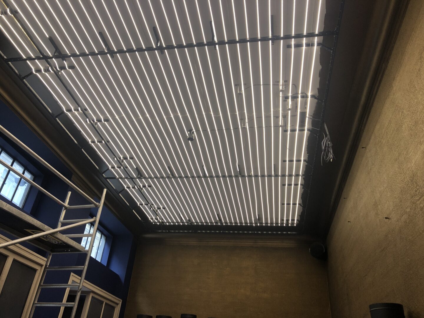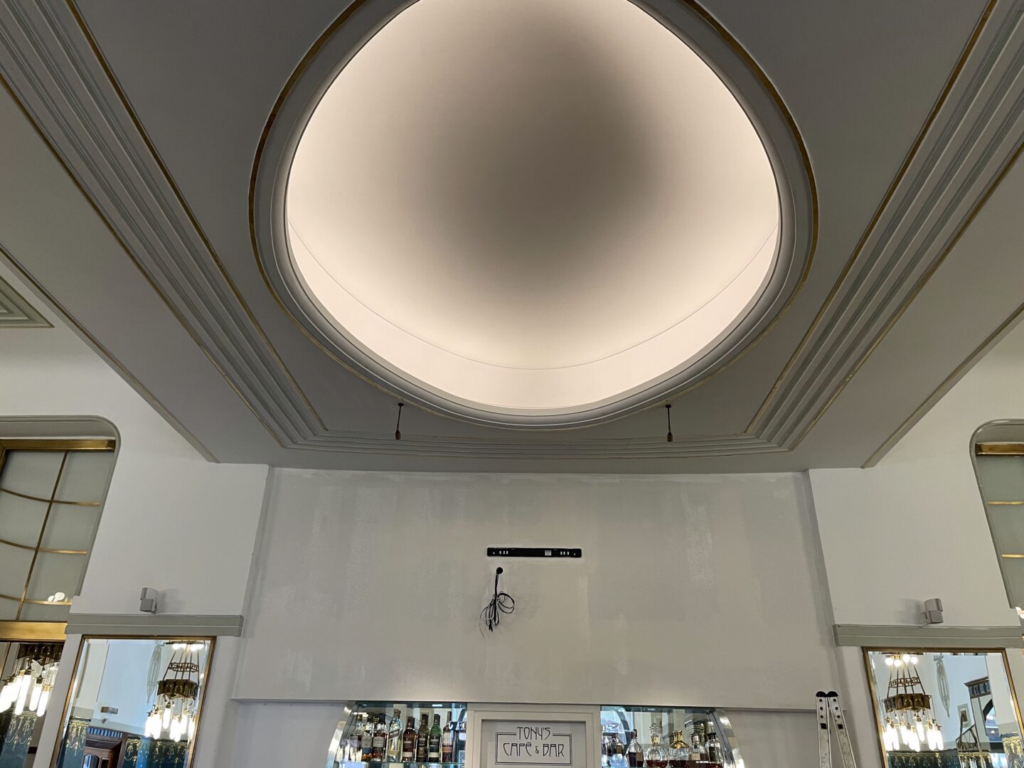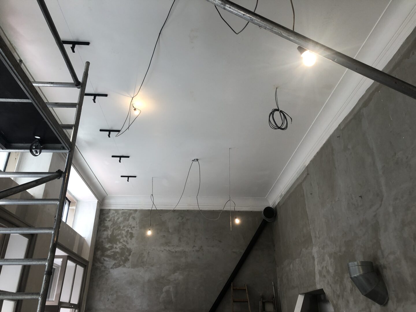 Instalace nosných konstrukcí a sádrokartonového zapláštění včetně stavebních úprav a malířských prací v historickém interiéru hotelu Paříž.