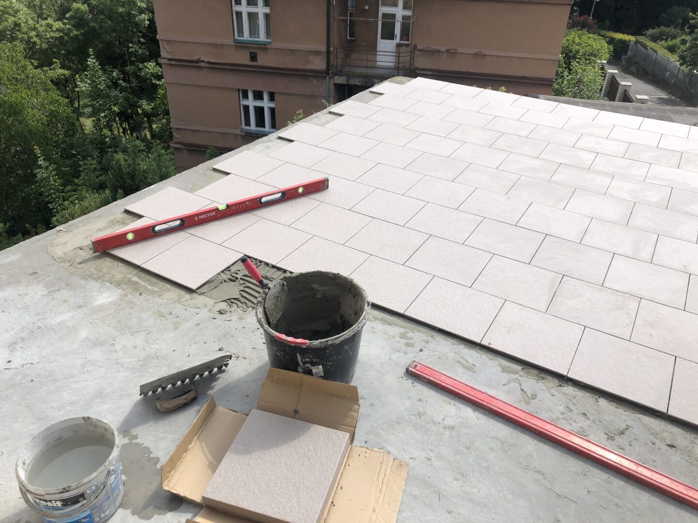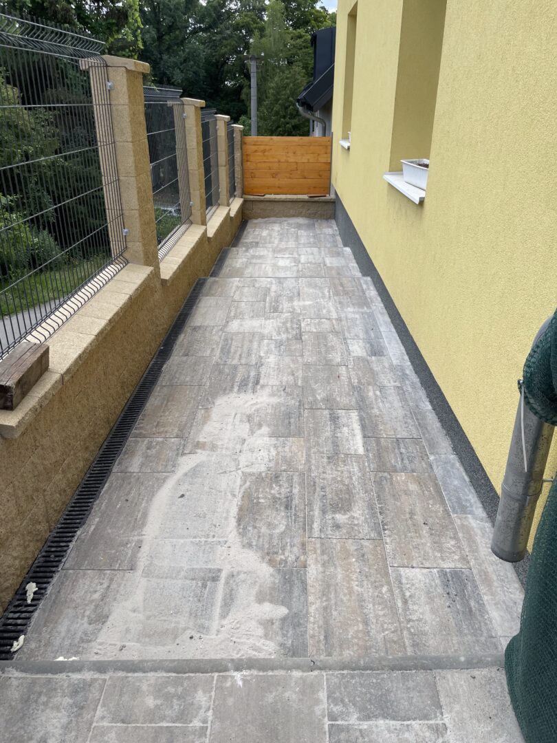 Rekonstrukce venkovní terasy, nová pokládka dlažby a další terénní úpravy. Součástí projektu byly zednické a obkladačské práce.