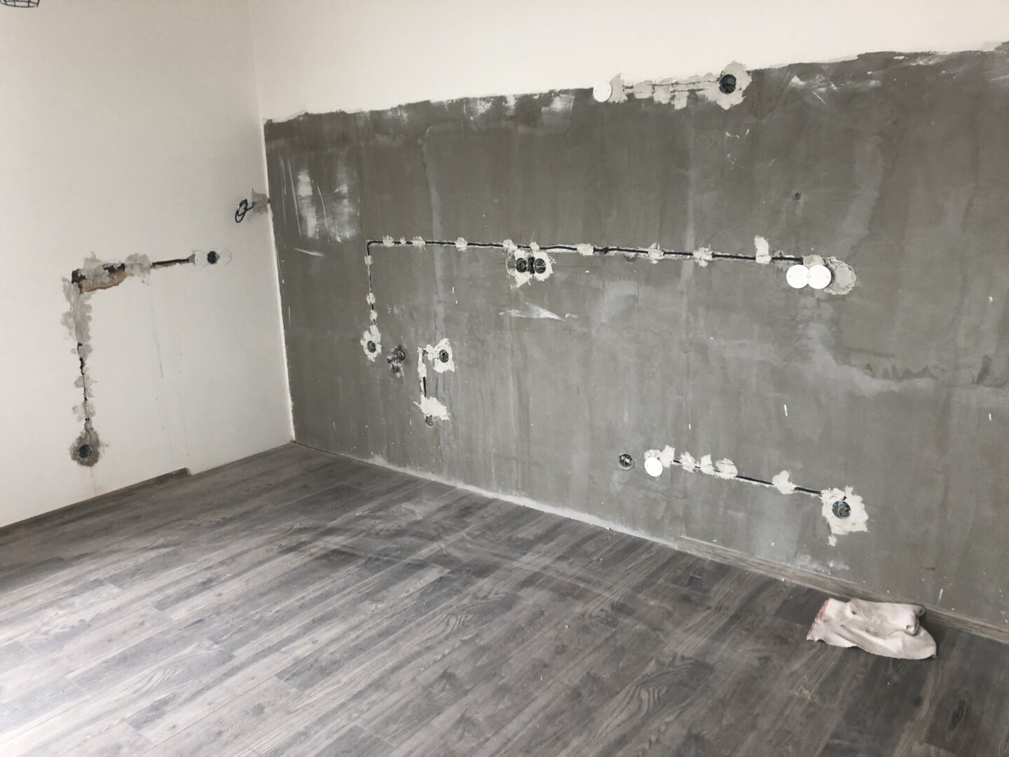 Úprava dětského pokoje – zednické práce, elektroinstalace, tapetářské a malířské práce.