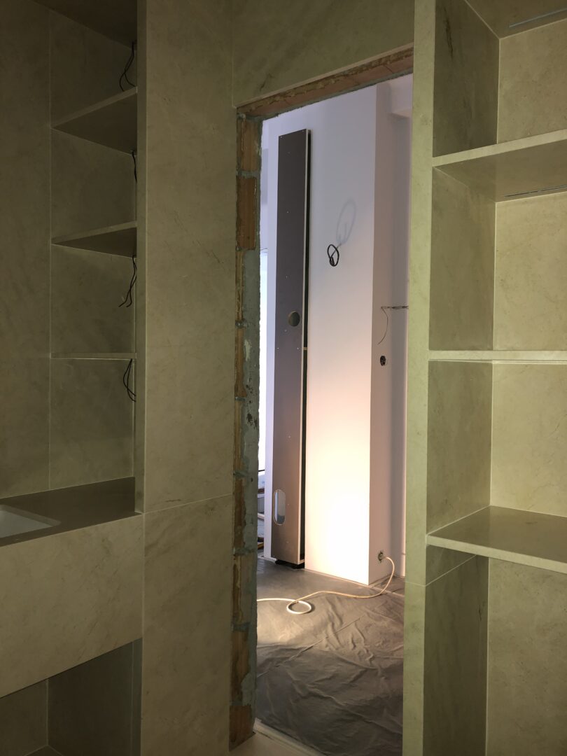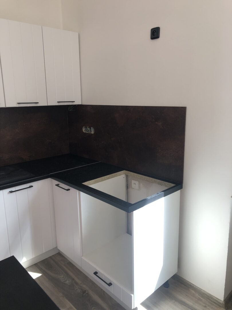 Rekonstrukce bytové jednotky zahrnovala zednické práce, obklady, sádrokartony, topení, vodoinstalaci, elektroinstalaci a vzduchotechniku. Výsledkem je funkční, moderní interiér.