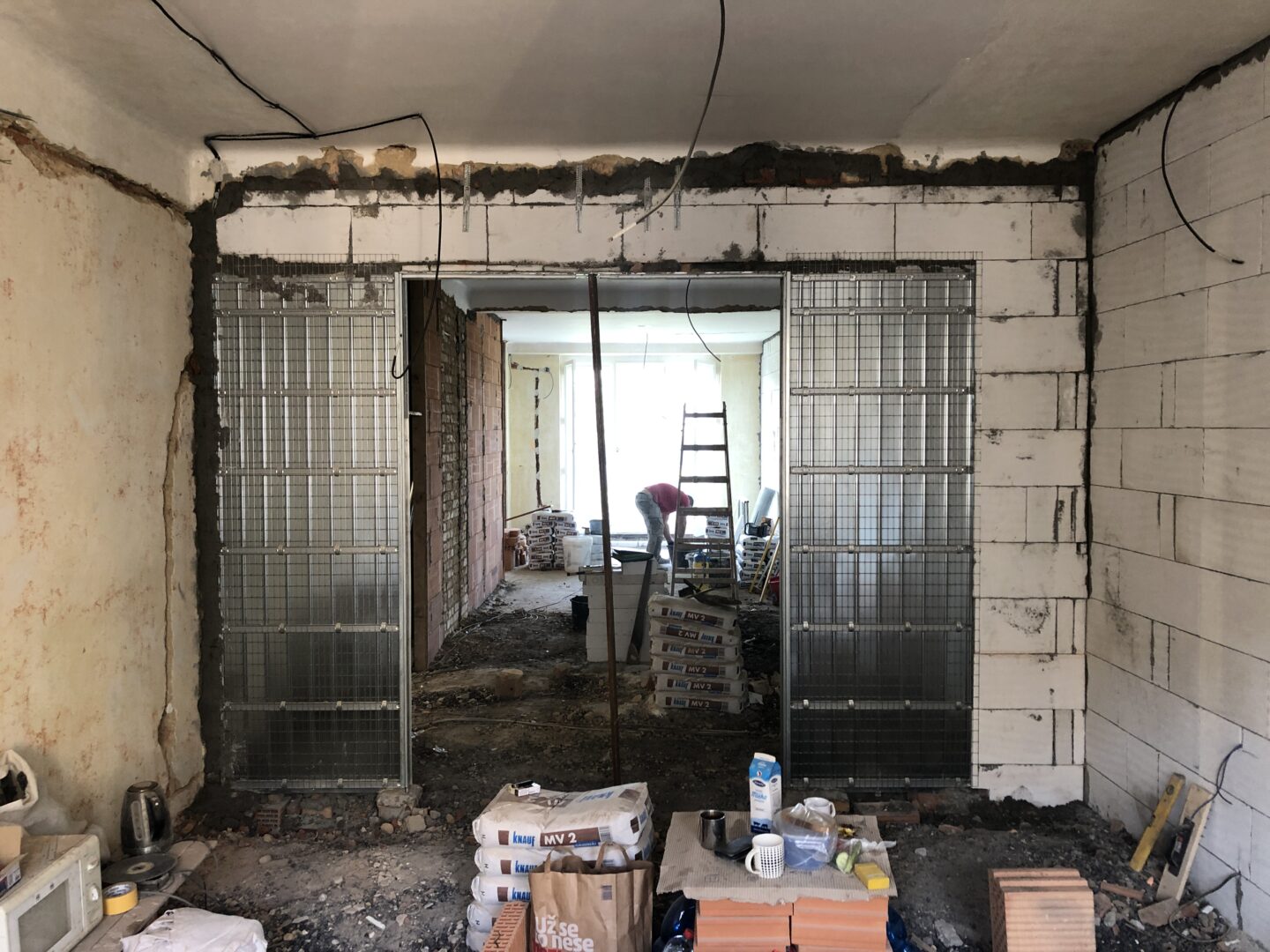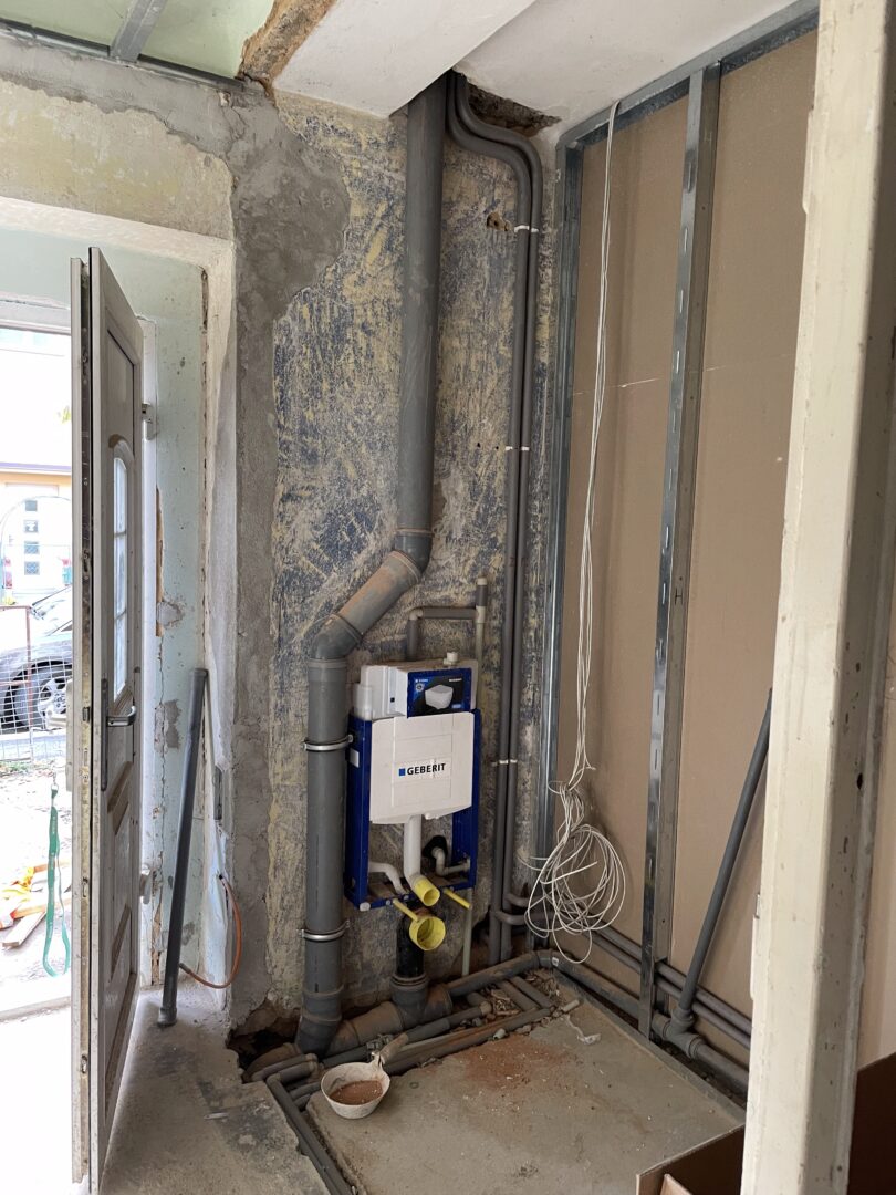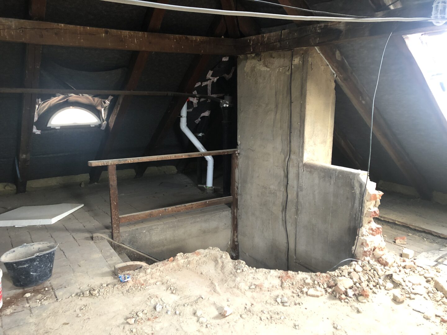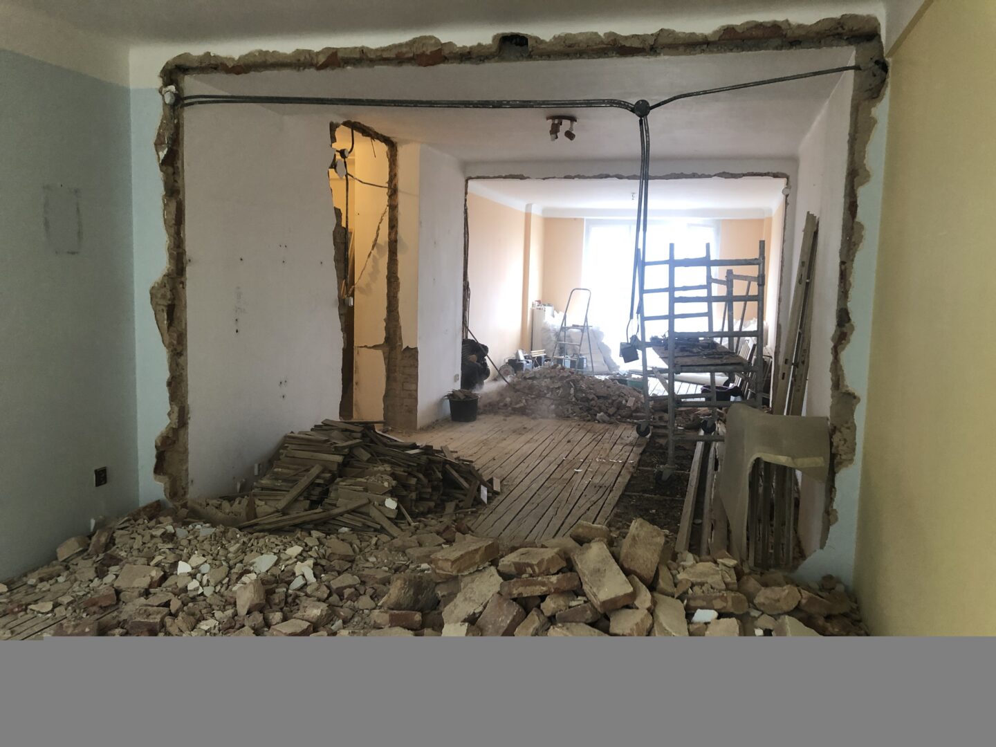 Probíhající kompletní rekonstrukce interiéru včetně obkladů a dlažeb. Realizujeme rozvody ZTI vody, kanalizace, topení a plynu, odkouření a instalaci komínových vložek.