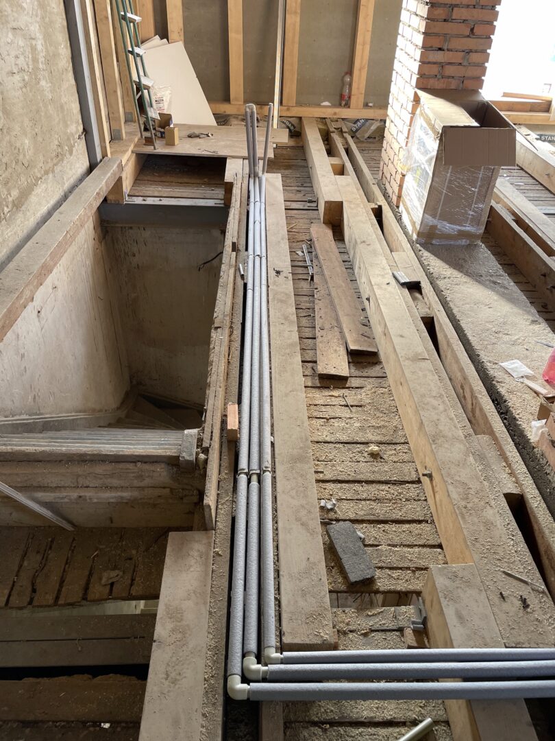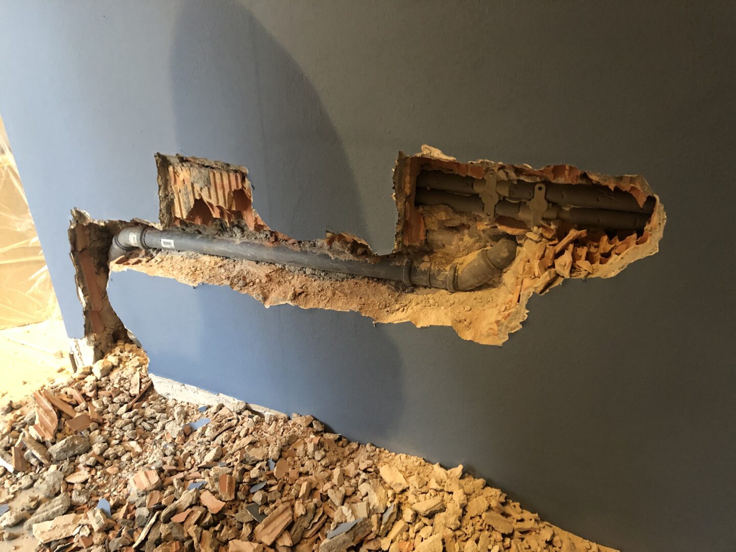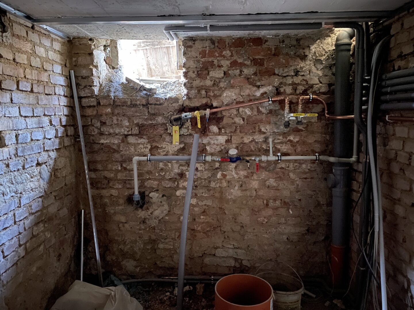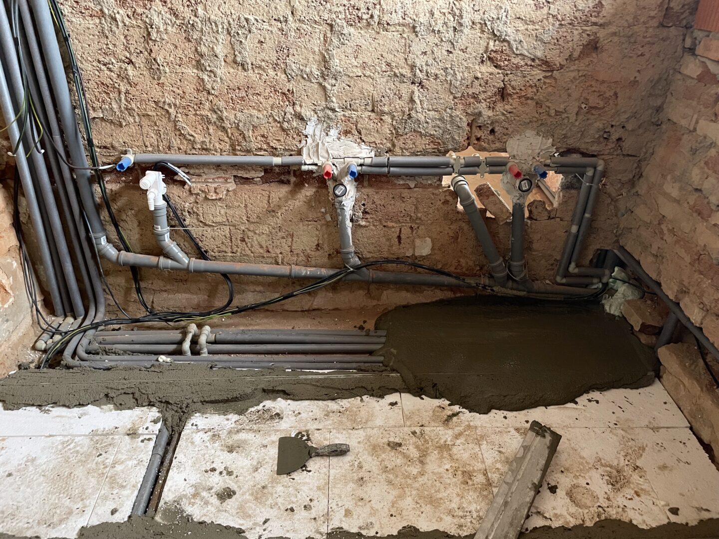 Probíhající kompletní rekonstrukce interiéru včetně obkladů a dlažeb. Realizujeme rozvody ZTI vody, kanalizace, topení a plynu, odkouření a instalaci komínových vložek.