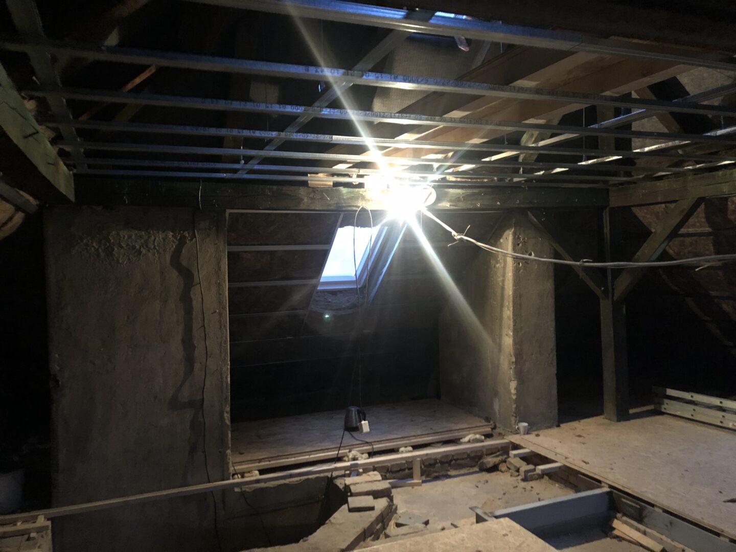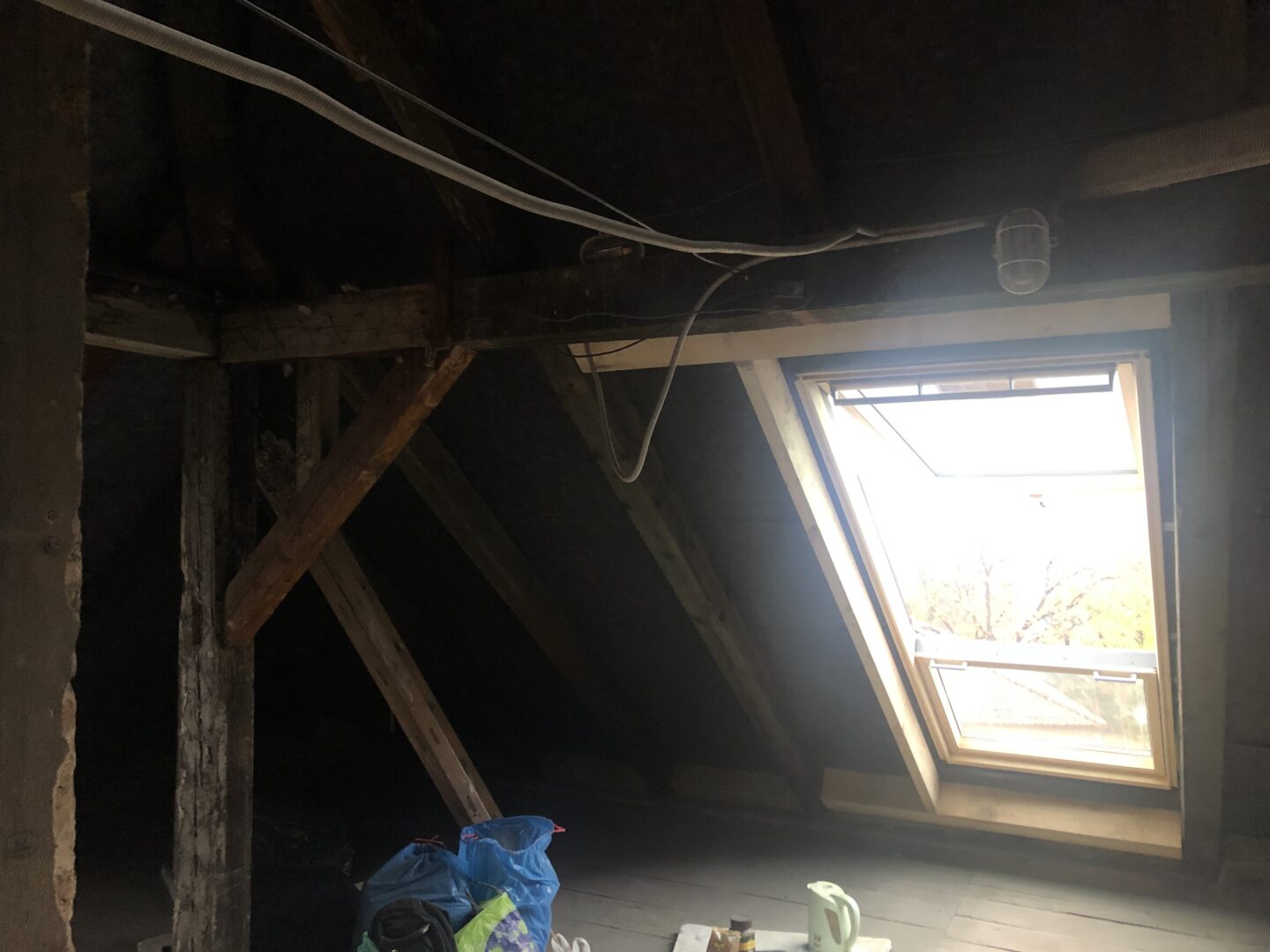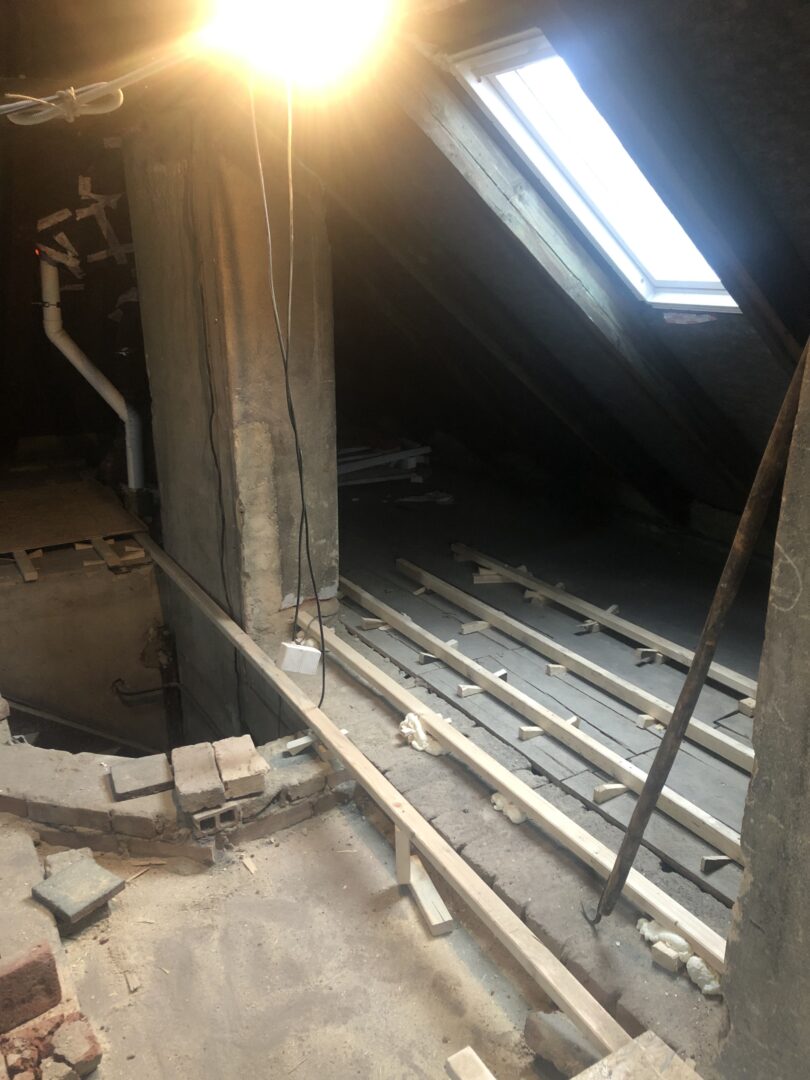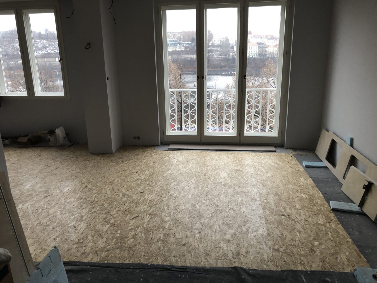 Rekonstrukce bytu v centru Prahy zahrnovala zednické práce, podlahovou skladbu v podkroví, obklady, sádrokartony, topení, vodoinstalaci, elektroinstalaci, vzduchotechniku, tesařské, truhlářské a zámečnické práce a malby.