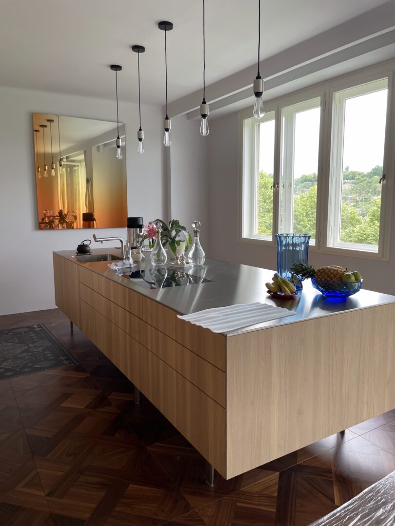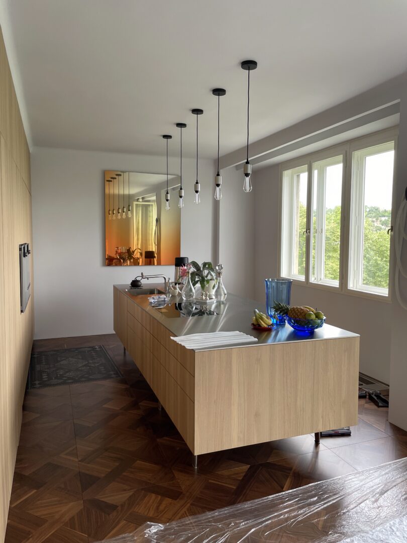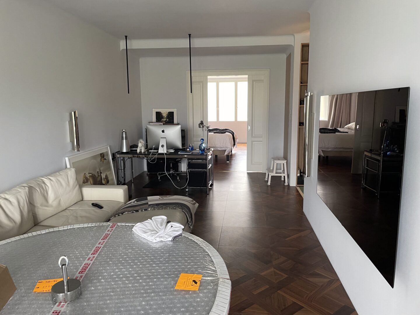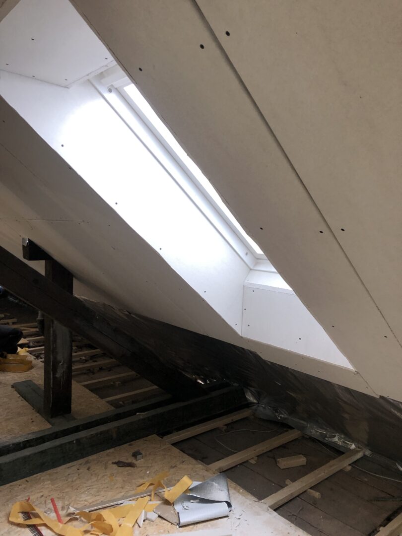 Rekonstrukce bytu v centru Prahy zahrnovala zednické práce, podlahovou skladbu v podkroví, obklady, sádrokartony, topení, vodoinstalaci, elektroinstalaci, vzduchotechniku, tesařské, truhlářské a zámečnické práce a malby.