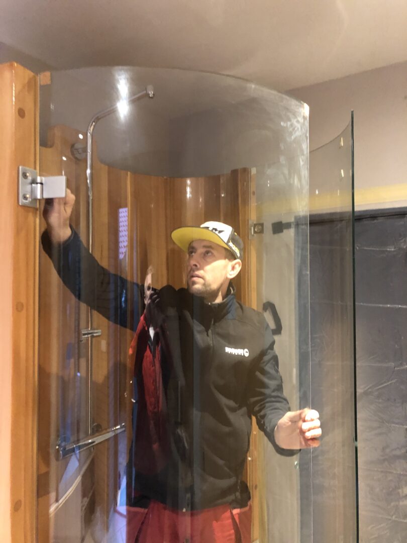 Úprava vstupní haly včetně montáže dřevěné sprchové kabiny. Projekt zahrnoval zednické práce, vodoinstalaci, betonové stěrky a malířské práce.