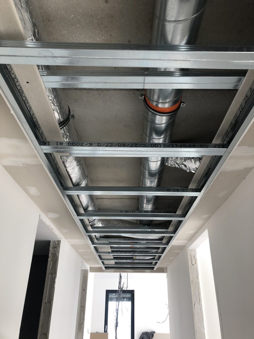 Rozsah: Instalace nosných prvků a sádrokartonářské konstrukce