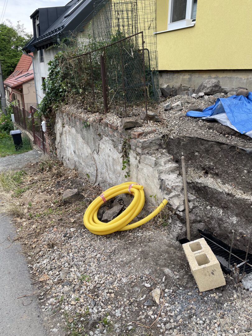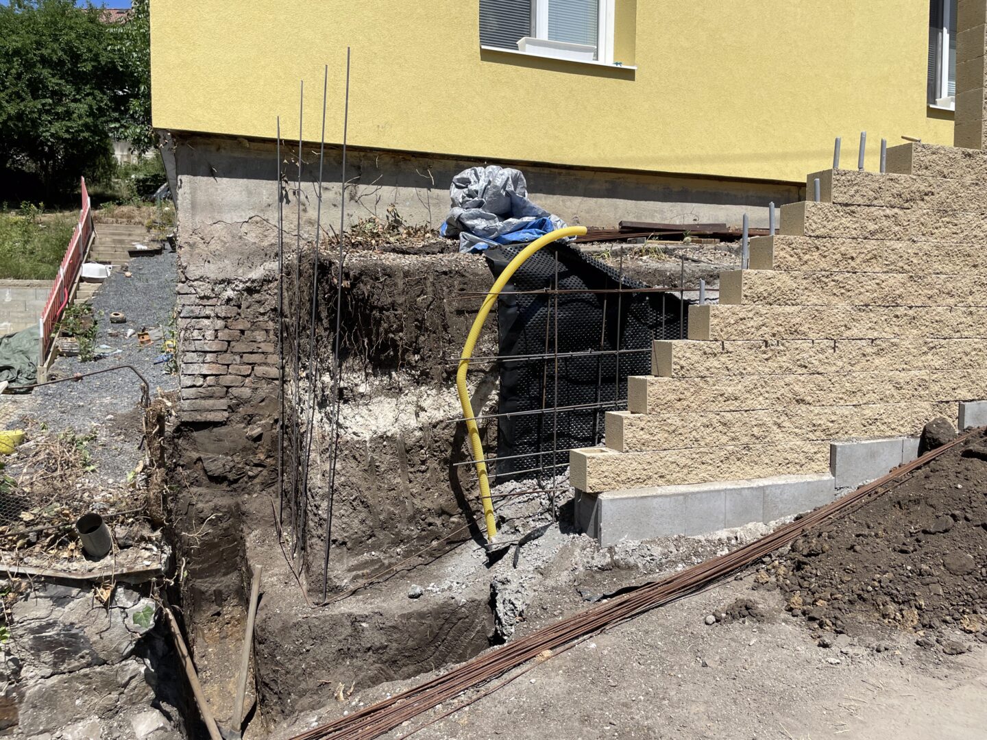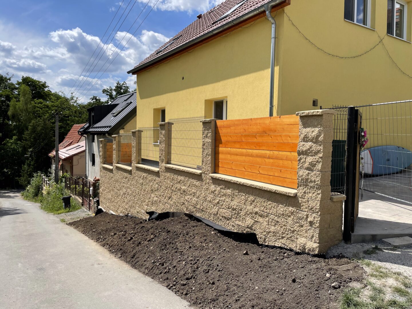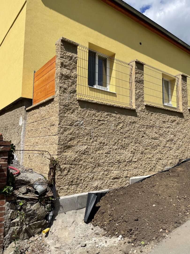 Úprava exteriéru – terénní práce, betonový plot z CSB tvárnic, pokládka zámkové dlažby a napojení kanalizační šachty. Součástí byly zednické práce, vodoinstalace a vzduchotechnika v technických částech objektu.
