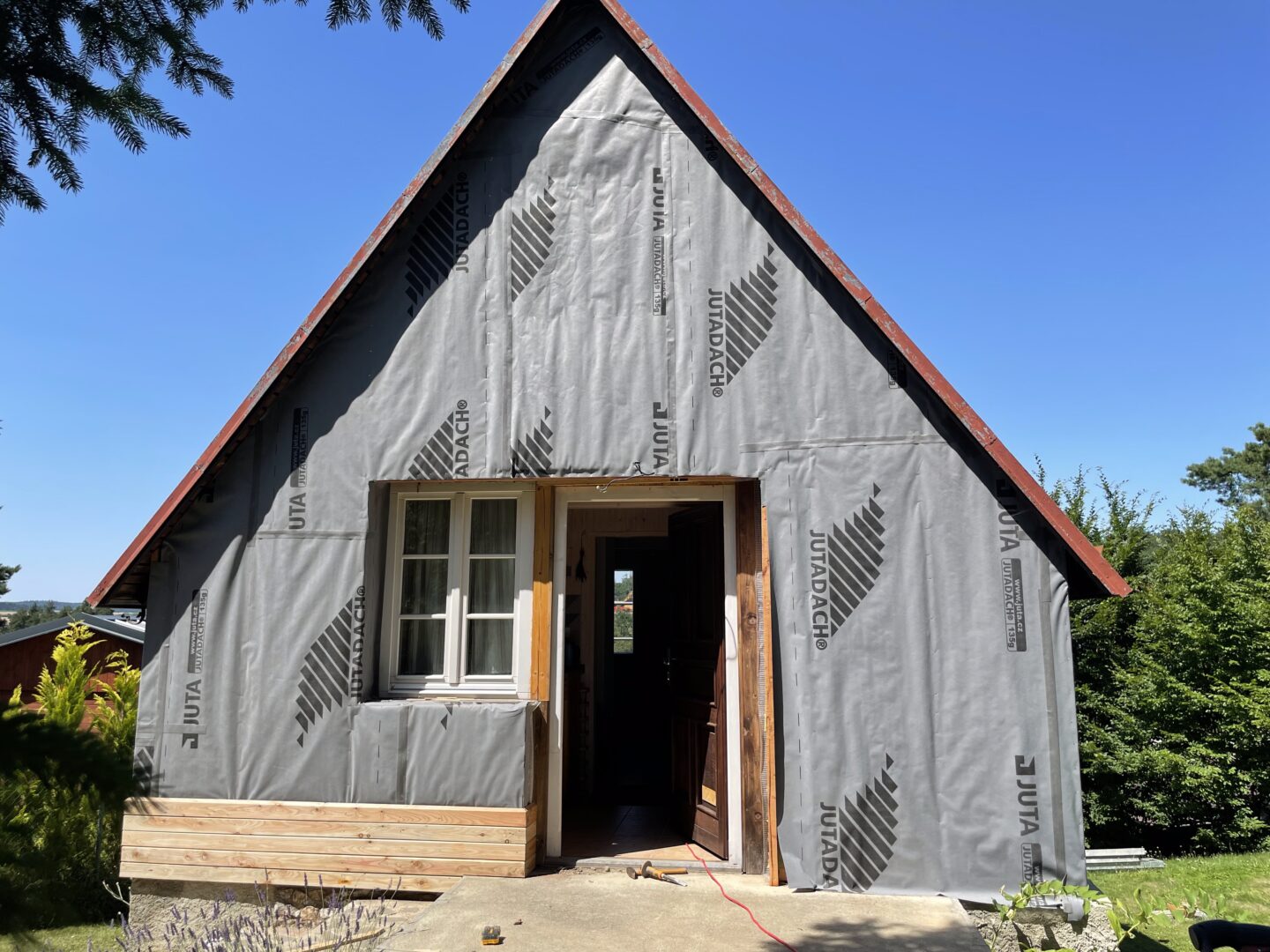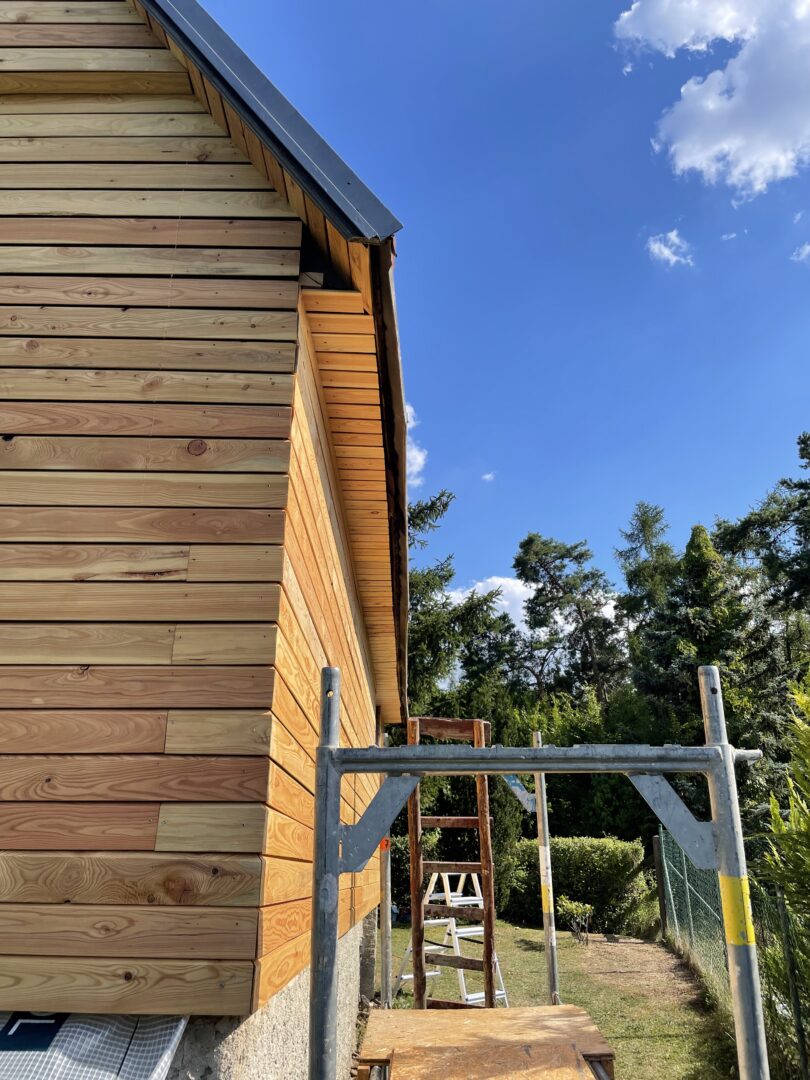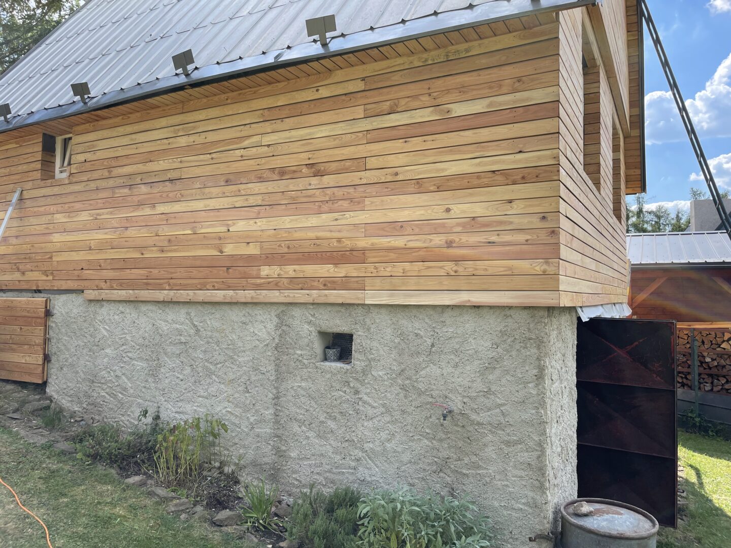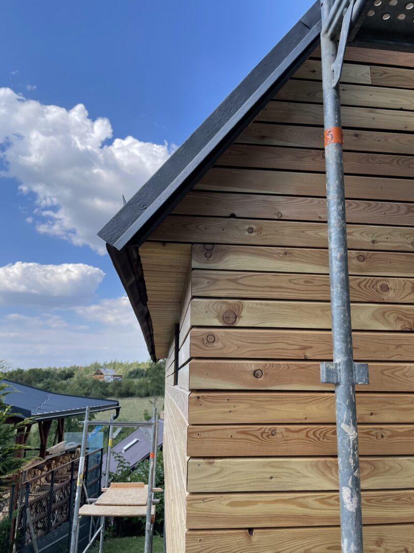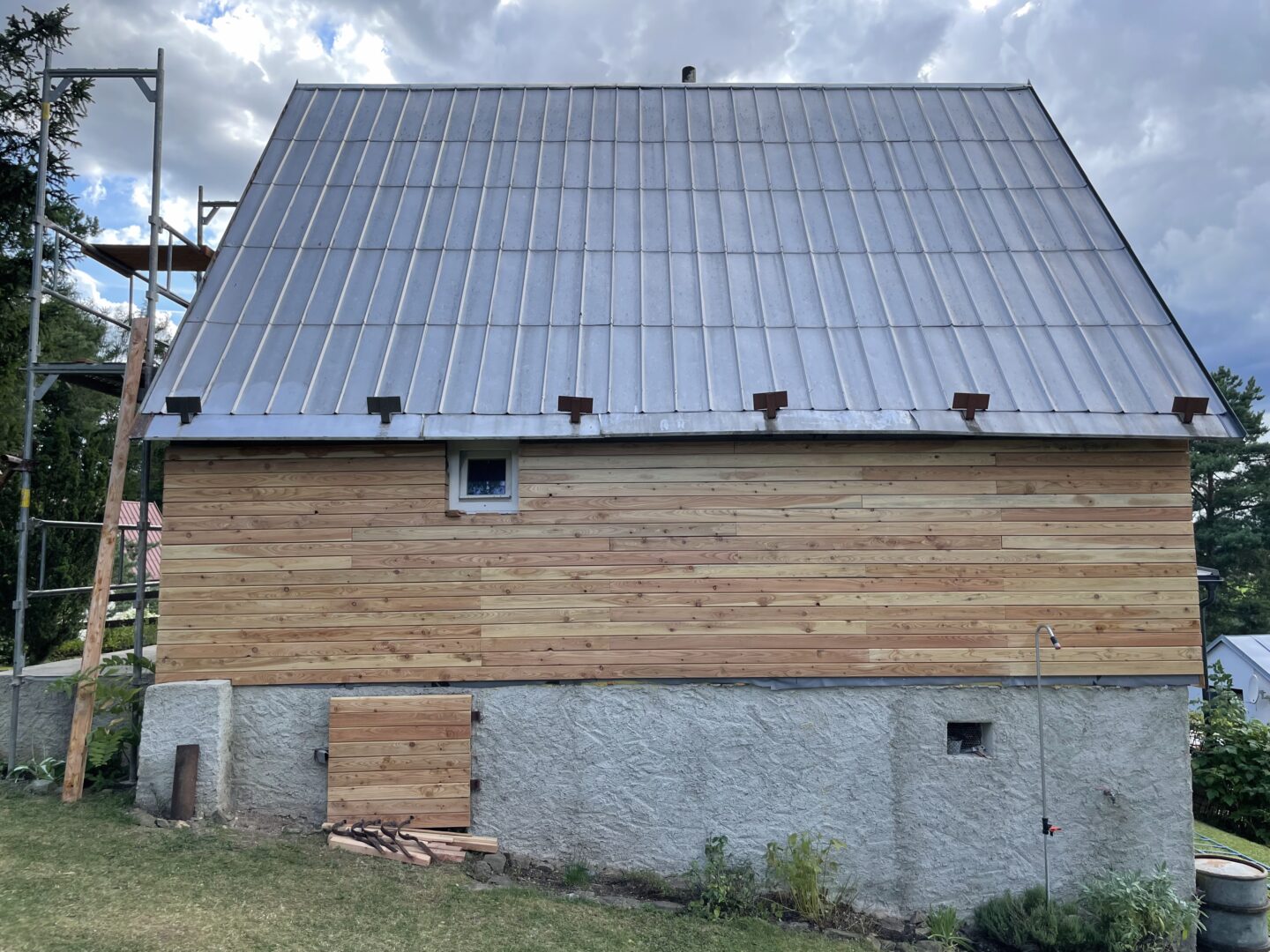 Kompletní zateplení a nová fasáda z modřínových palubek Rhombus. Projekt sjednotil vzhled a zlepšil energetickou účinnost rekreační chaty.