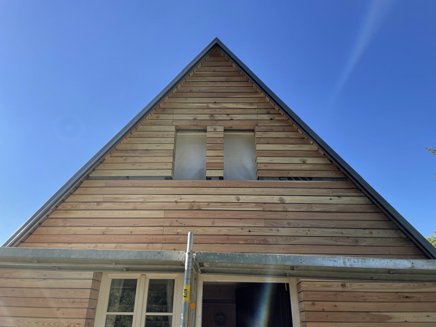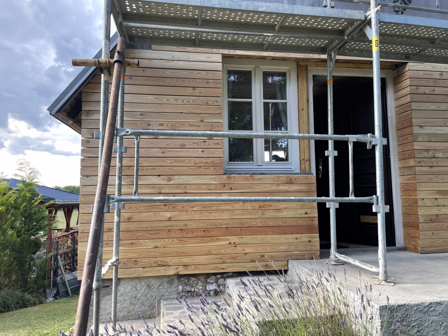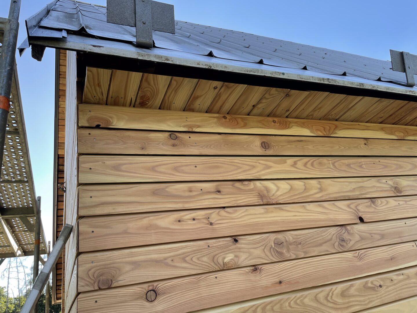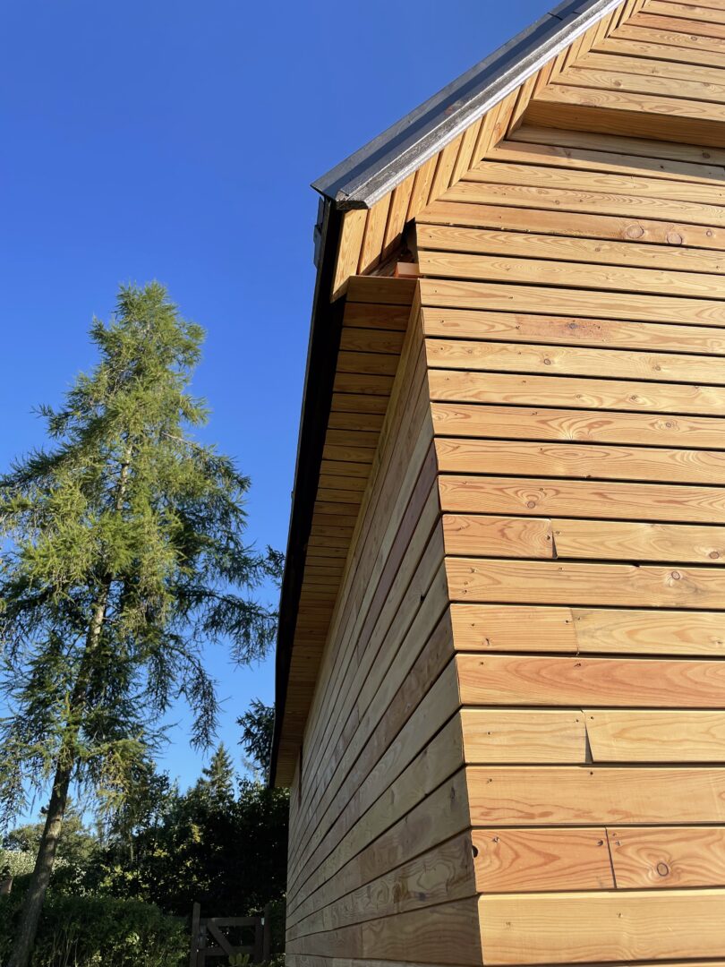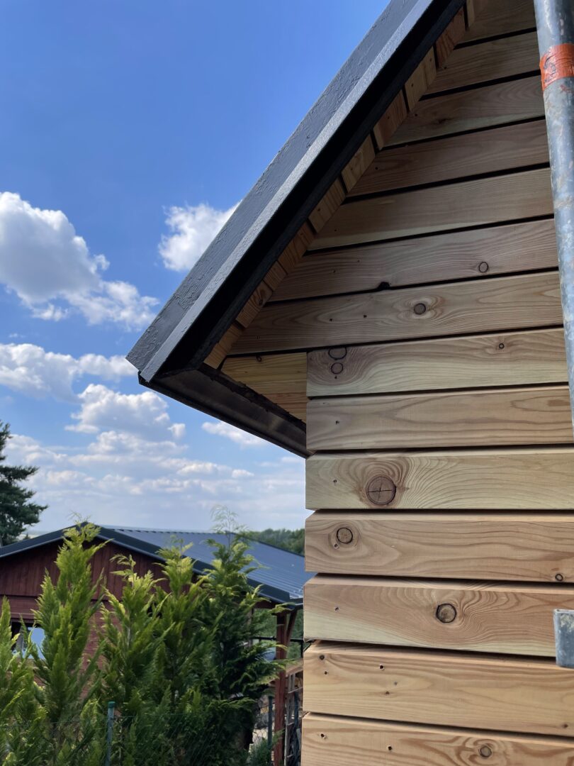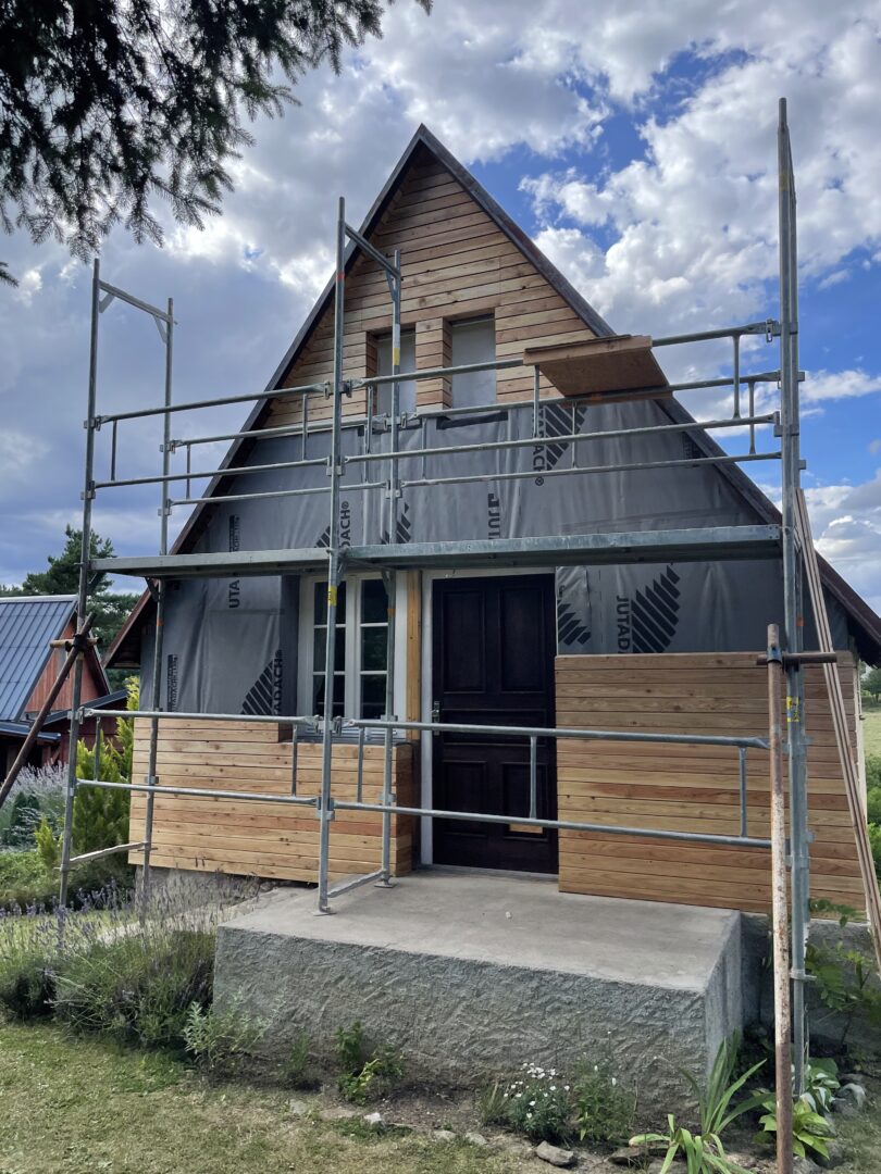 Kompletní zateplení a nová fasáda z modřínových palubek Rhombus. Projekt sjednotil vzhled a zlepšil energetickou účinnost rekreační chaty.