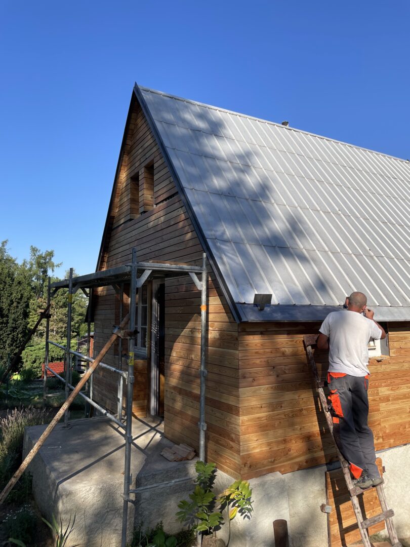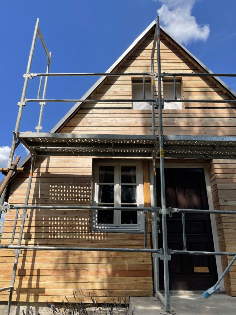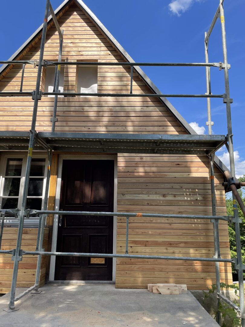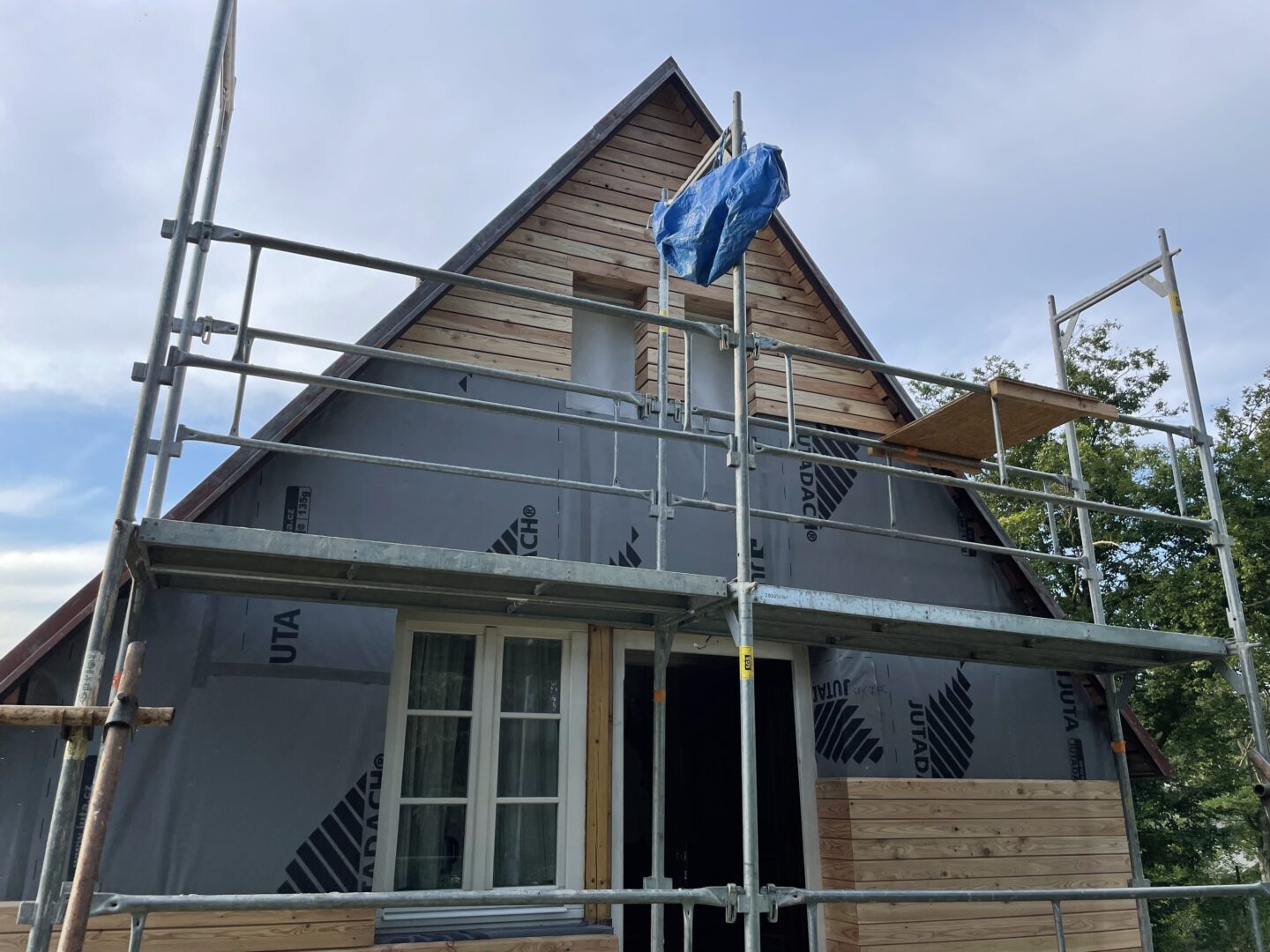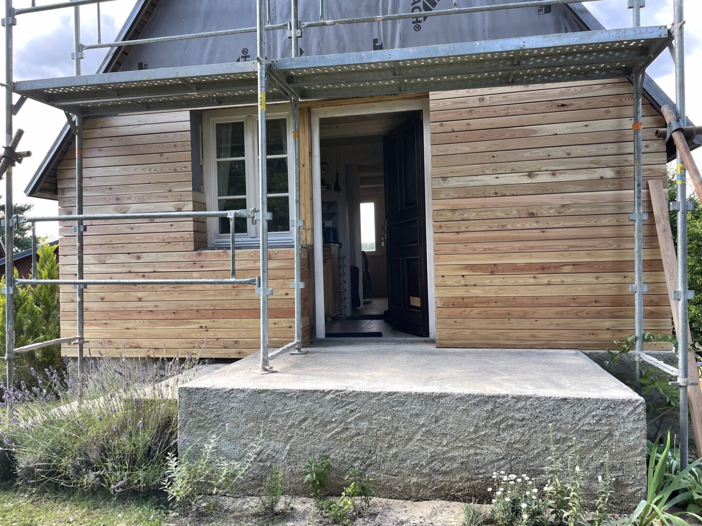 Kompletní zateplení a nová fasáda z modřínových palubek Rhombus. Projekt sjednotil vzhled a zlepšil energetickou účinnost rekreační chaty.
